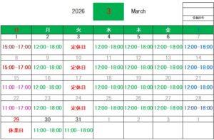 3月の営業時間のご案内
