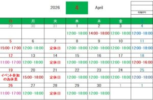 4月の営業時間のご案内