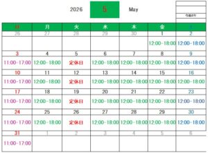 その他、急遽イベント参加させて頂く事になった場合もお休みさせて頂きます。